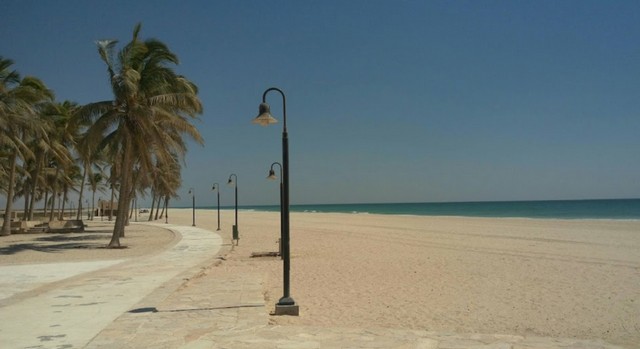 Authorities completed the development and beautification project at Dahariz Beach during Khareef 2015. A key feature is the illuminated walkway, highlighted by elegant bollard lights. Visitors often walk or jog here during sunrise and sunset, enjoying scenic ocean views.
