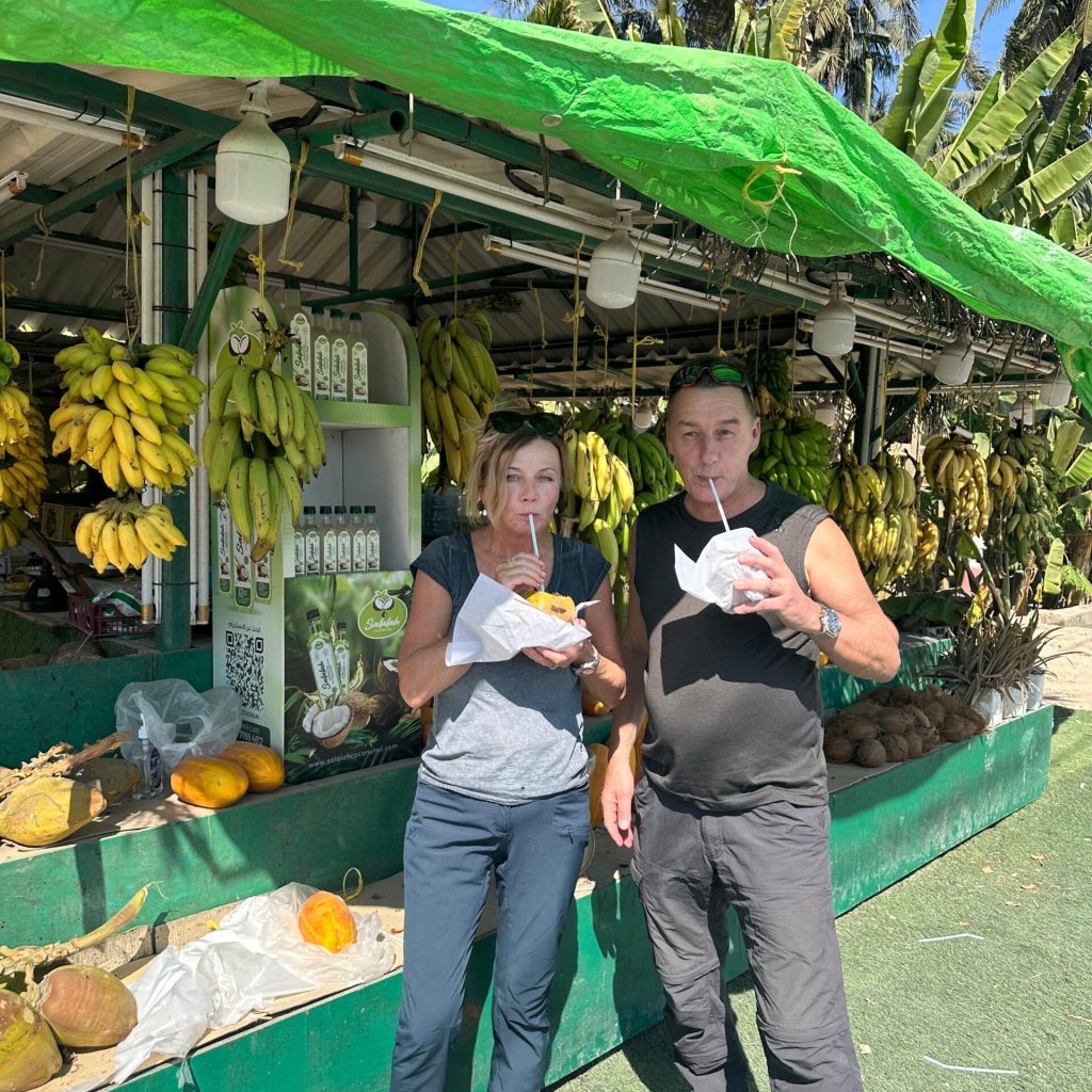 وهي ليست طازجة فقط بل لها الكثير من الفوائد الصحية. يبلغ سعر جوزة الهند الواحدة 200 بيازا أي 60 سنتاً. وهي متوفرة في أكشاك الفاكهة في شارع السلطان قابوسفي مكان قريب. تقع هذه الأكواخ تحت ظلال أشجار النخيل الطويلة الممتدة في كلا الاتجاهين.