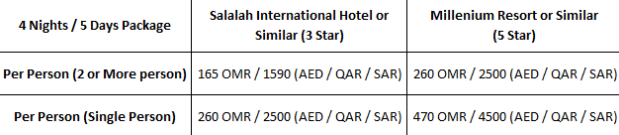 - Monday: Check-out (Time 12:15 PM), Drop to Airport, Departure from Salalah